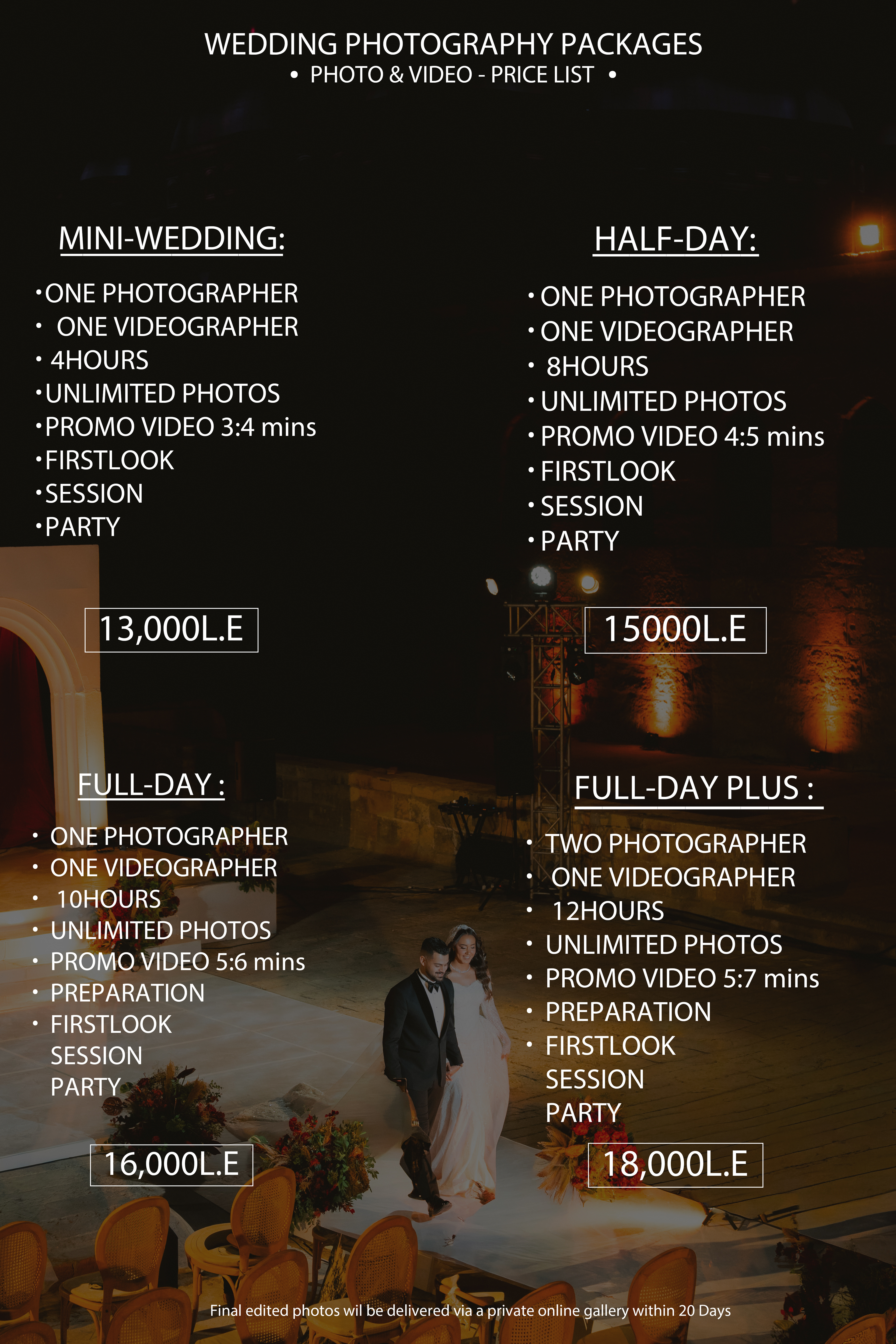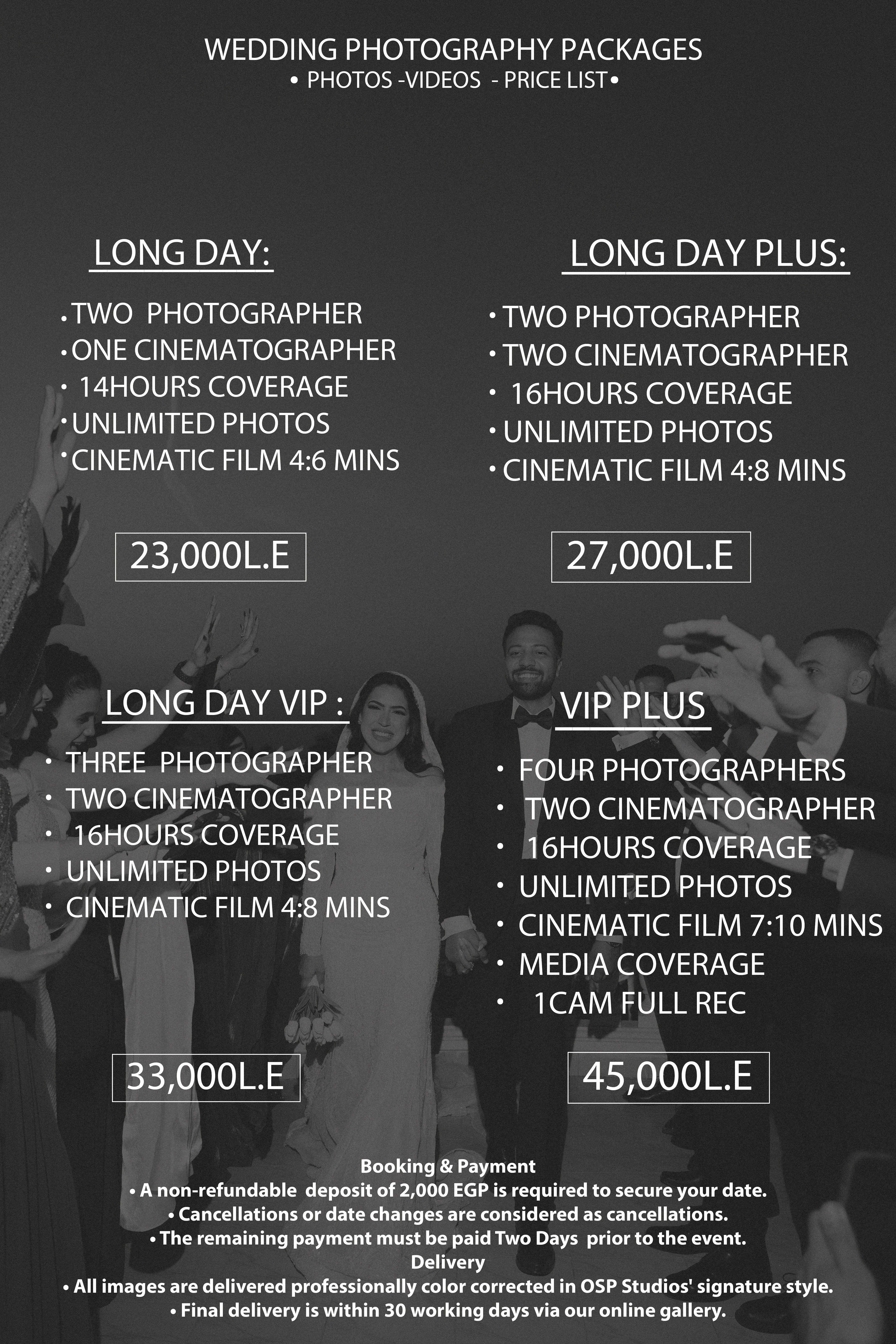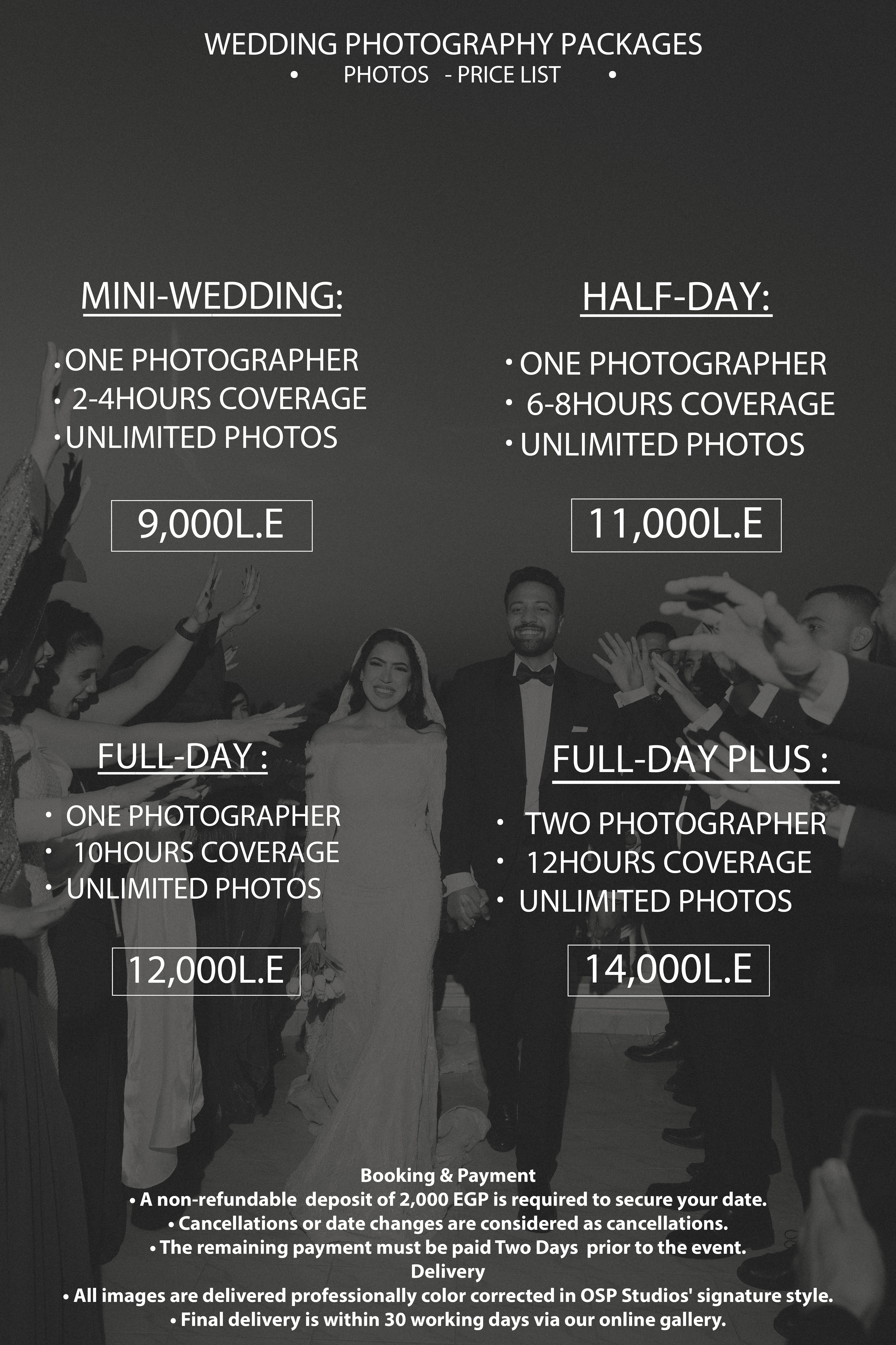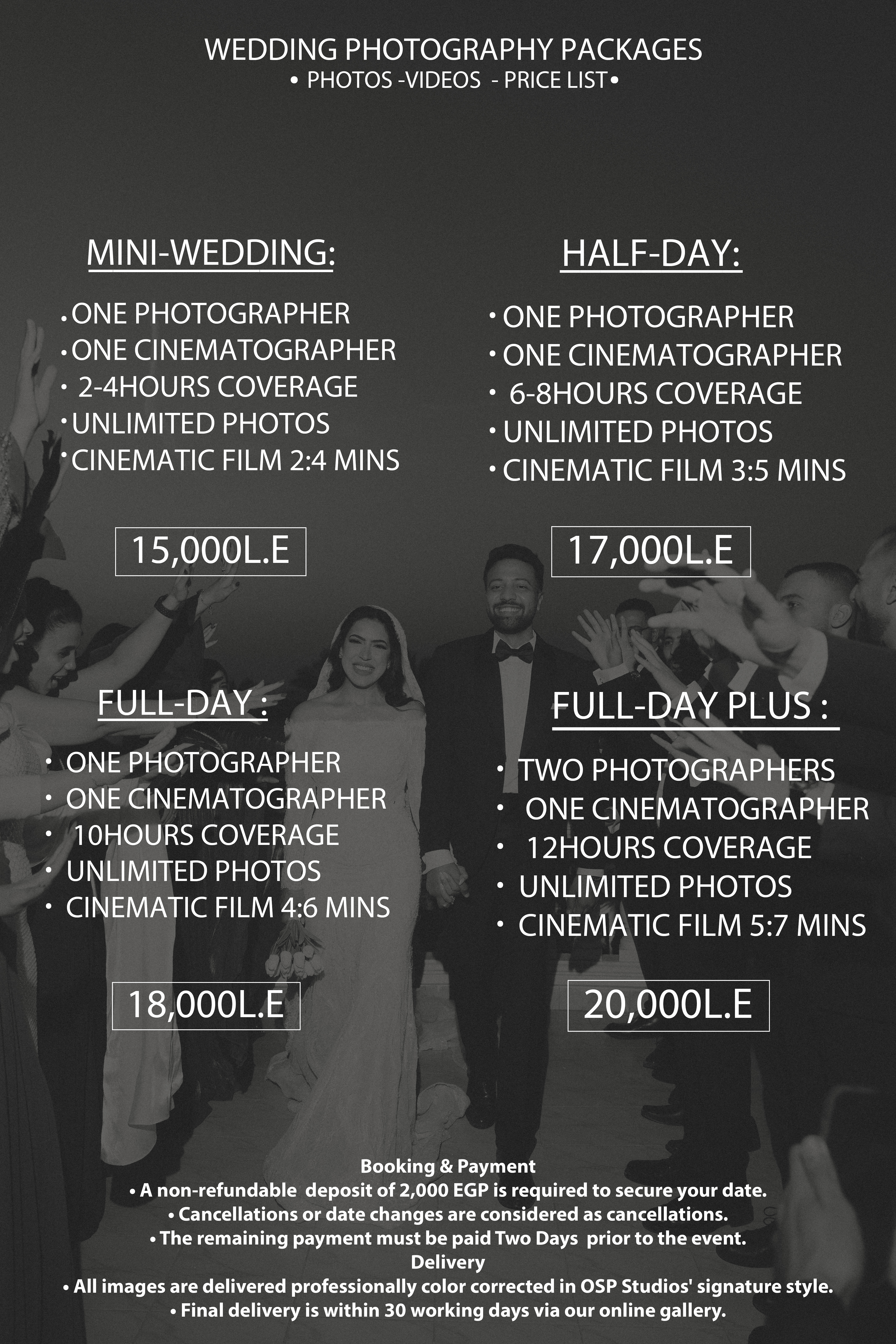 - Full-Day Coverage: Comprehensive coverage from the early preparations to the last dance, ensuring no moment is missed.