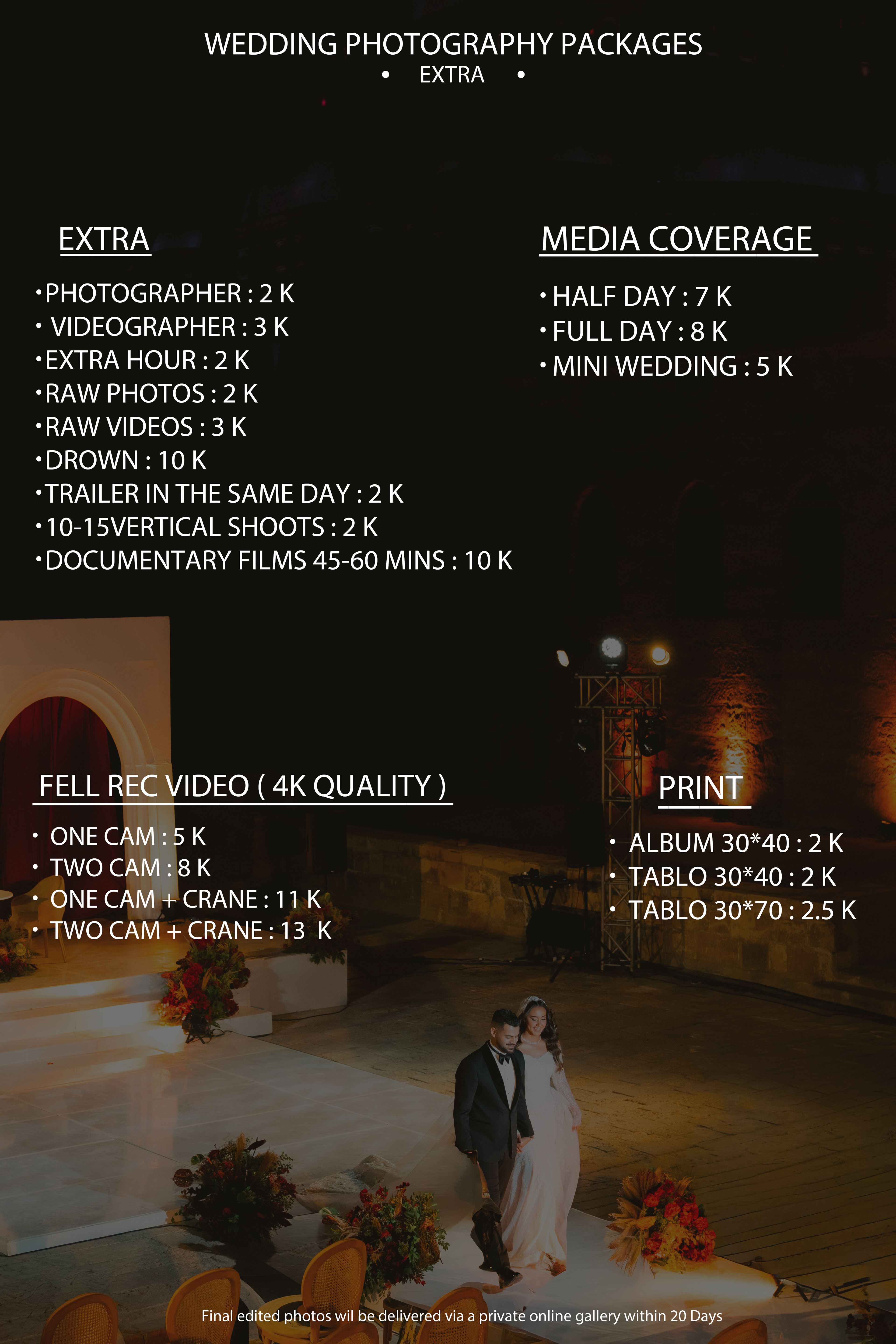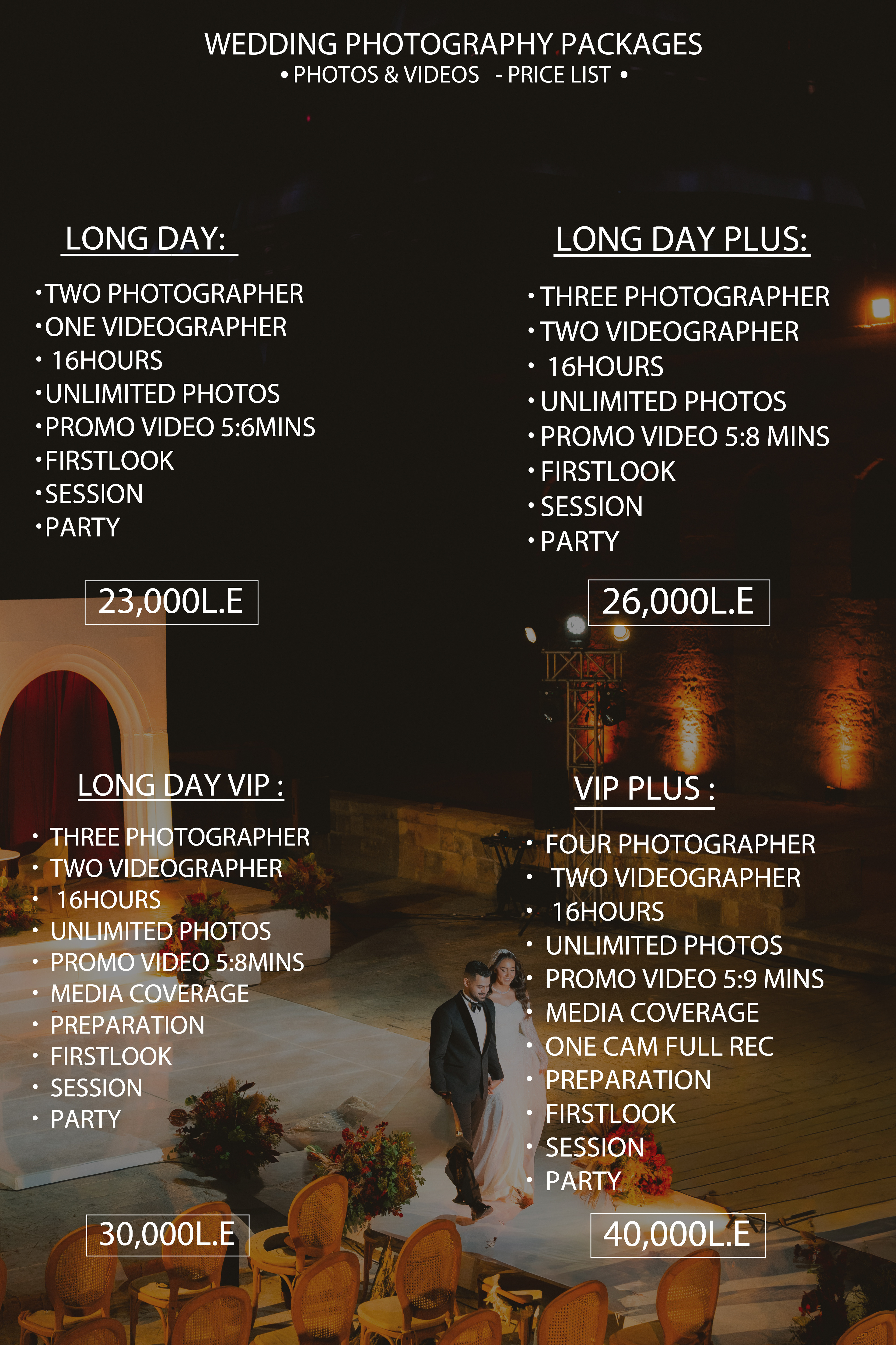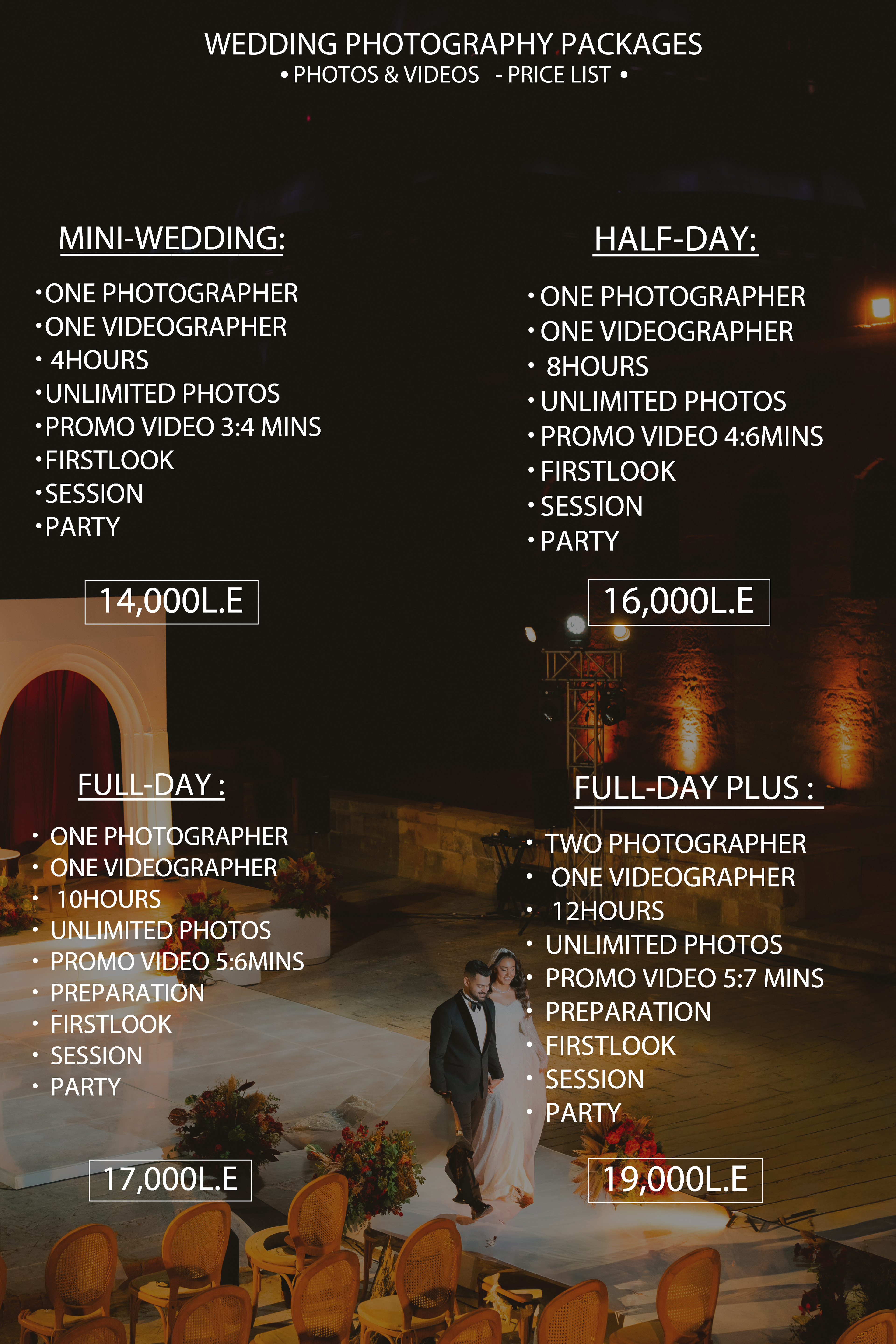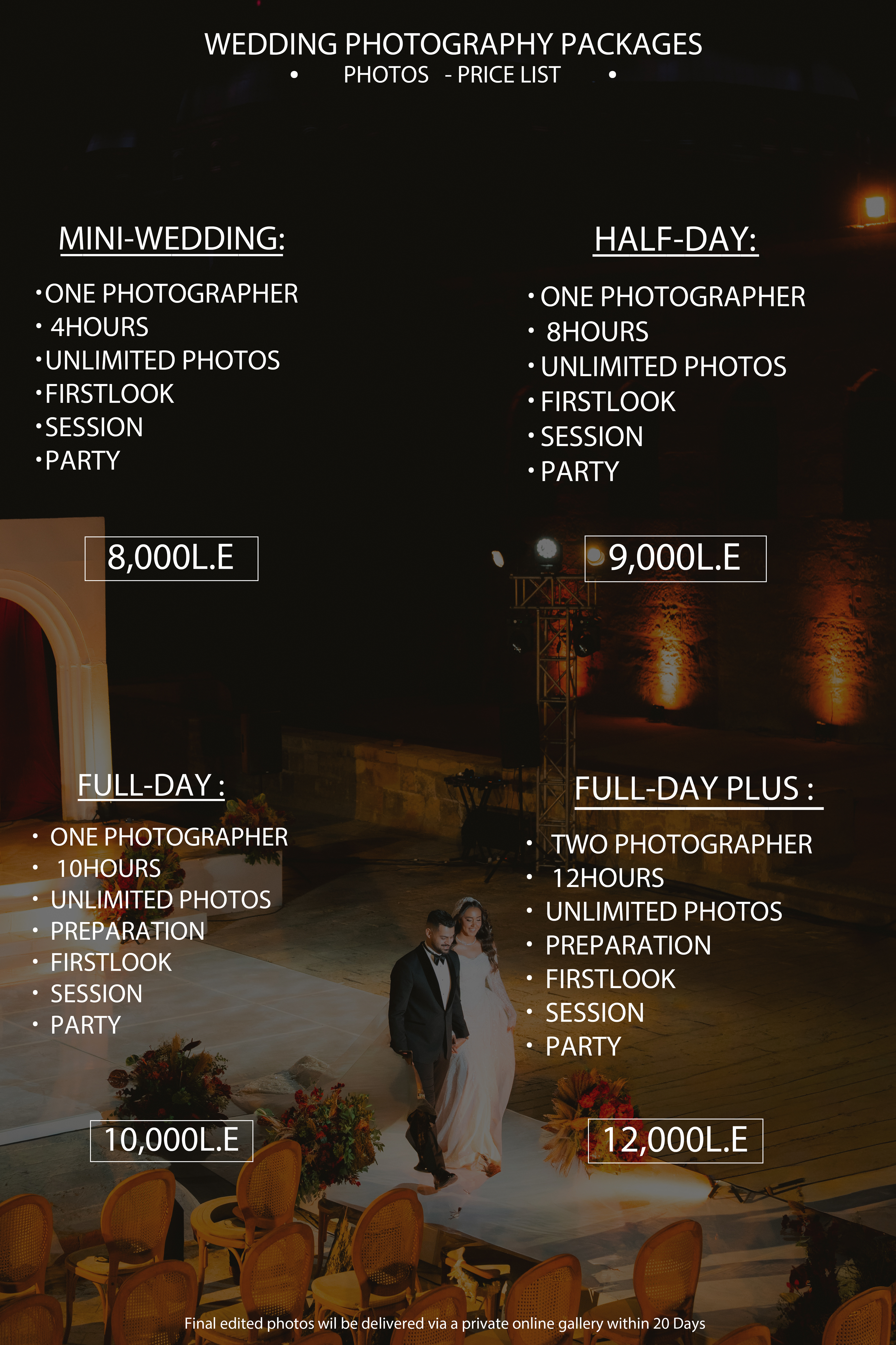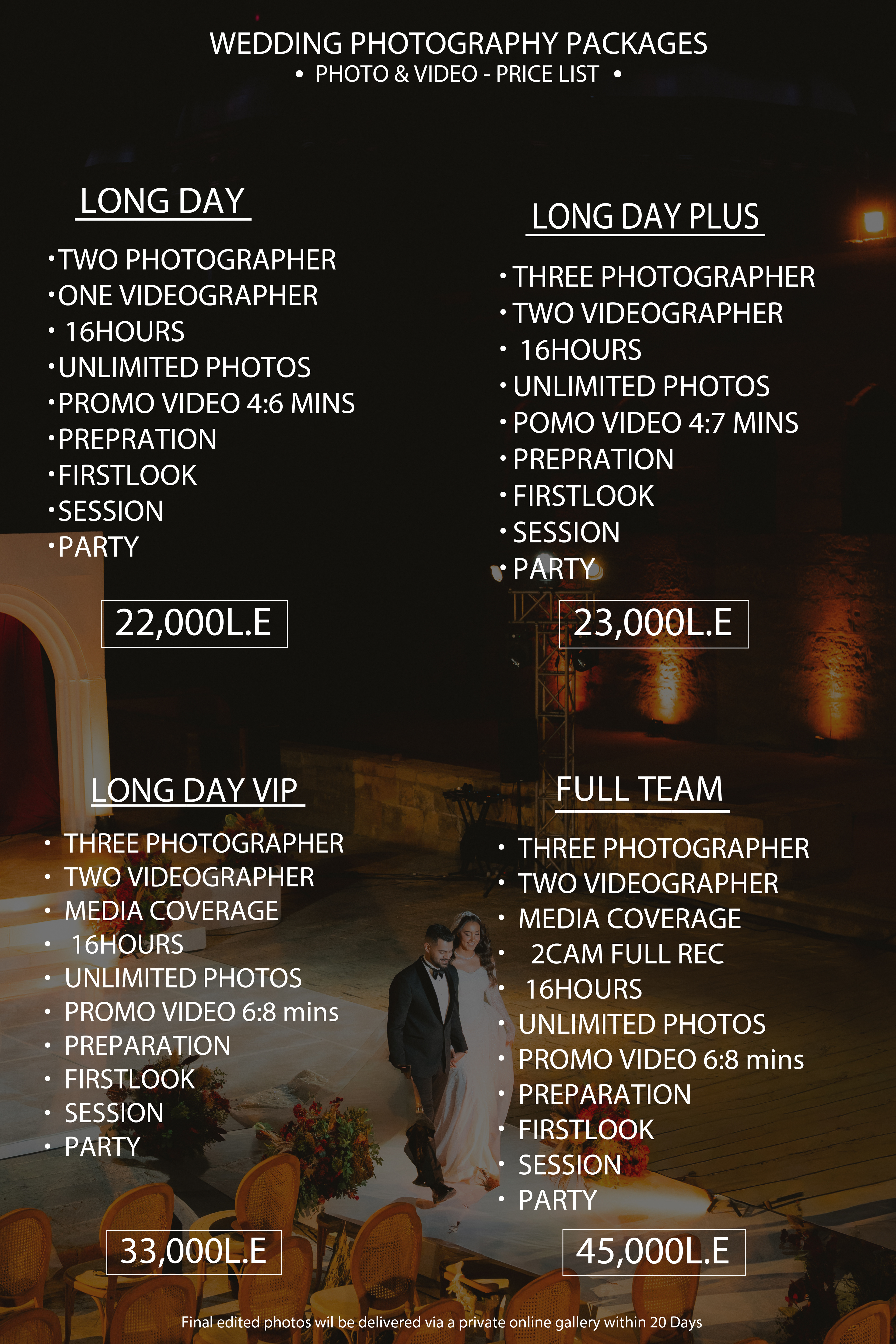 - Full-Day Coverage: Comprehensive coverage from the early preparations to the last dance, ensuring no moment is missed.